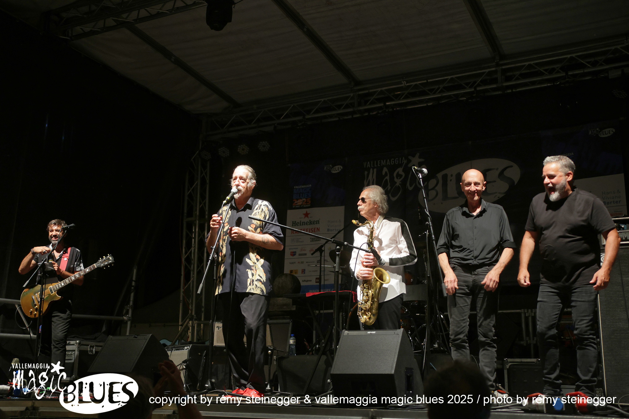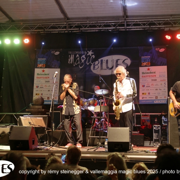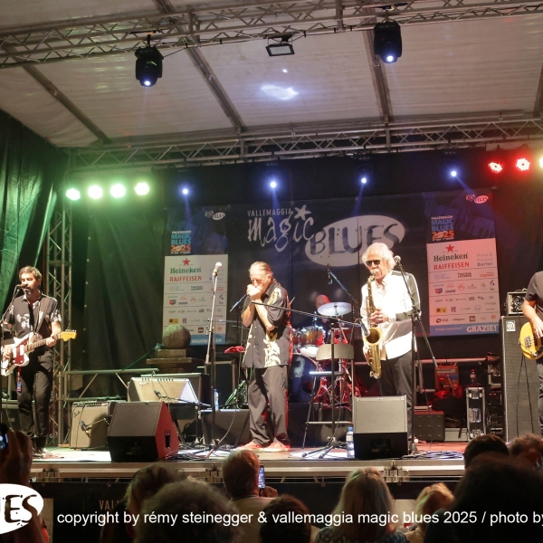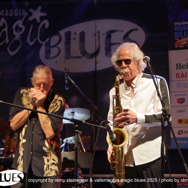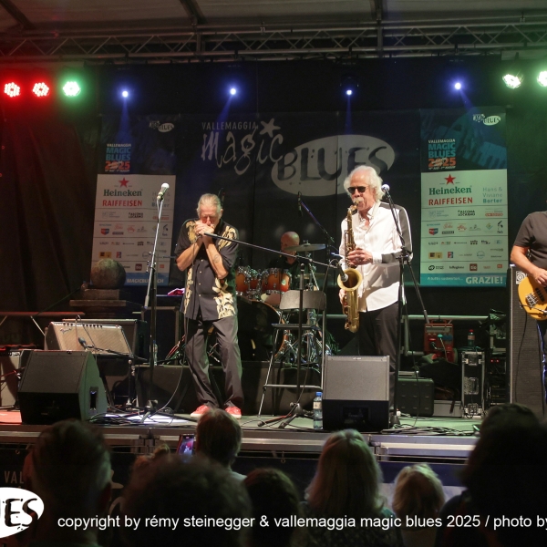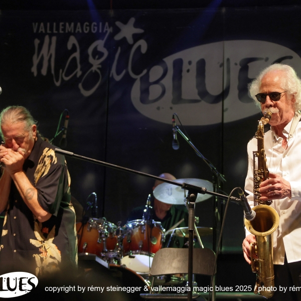 Ritorna con grande piacere la Treves Blues Band, “il gruppo” italiano di Blues accompagnato per l’occasione del tour per i 50 anni d’attività da una vera icone del blues mondiale: Lou Marini dei Blues Brothers. L’avventura di Fabio Treves iniziò nel lontano 1974, quando decise di portare alla ribalta e far conoscere al grande pubblico, nell’epoca dei cantautori e del Prog Rock, la storia e i grandi maestri del Blues. Fu un successo incredibile, dettato anche dal fatto che Treves ha percorso per decenni in lungo e in largo tutta la penisola. Non c’è club che non abbia visto la presenza del Puma di Lambrate! Infinita la lista dei musicisti che hanno suonato in concerto e su disco con il “maestro”. Ha avuto anche occasione di suonare sul palco con grandi musicisti, tra cui anche il mitico Frank Zappa (Milano e Genova 1988). Oggi, dall’alto della sua infinita esperienza, è un punto di riferimento e un dispensatore di utili consigli per i giovani musicisti che vogliono cimentarsi con il Blues. In comune con Frank Zappa c’è Lou Marini (Zappa in New York 1976). Spesso definito un “eroe jazz non celebrato”, è l'anima, l'abile polistrumentista, arrangiatore, compositore, educatore e produttore, si è fatto un nome come sideman in vari gruppi di alto profilo, e qualsiasi musicista jazz newyorkese di spicco vi dirà che è “uno dei migliori musicisti jazz in assoluto”. Marini, che vive a New York, è famoso per la sua camaleontica capacità di immaginare ed eseguire idee inventive nel Jazz, nel Rock, nel Blues e nella musica classica. È davvero uno dei luminari più prolifici del settore, che dimostra un impegno instancabile nel suo mestiere. Innunerevoli le sue collaborazioni quale membro di diversi gruppi musicali di spicco: Woody Herman Orchestra, Doc Severinson, Blood, Sweat and Tears, The Band, Levon Helm & the RCO All-Stars, Dr. John, il già citato Frank Zappa, Saturday Night Live (SNL) Band, The Blues Brothers, Maureen McGovern, Lew Soloff Quintet, Blue Beck con Joe Beck, Eric Clapton, Red House e Magic City Jazz Orchestra. A Maggia si prospetta una serata indimenticabile, da non lasciarsi sfuggire!