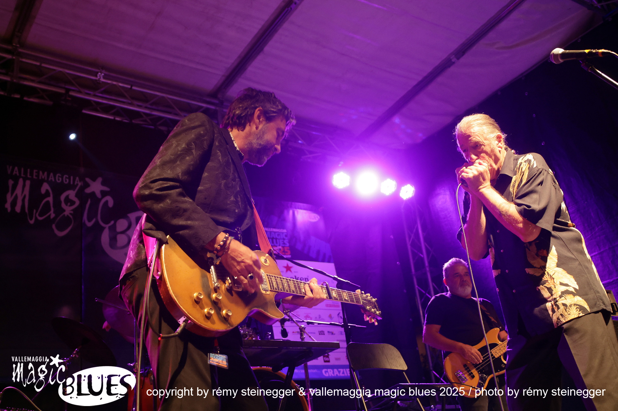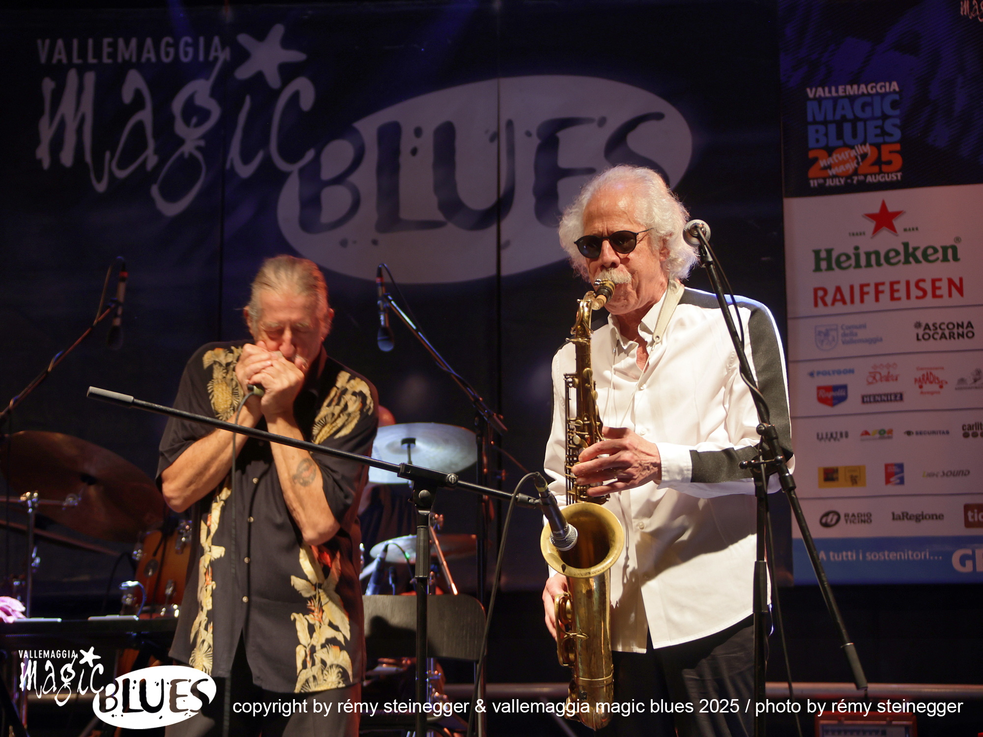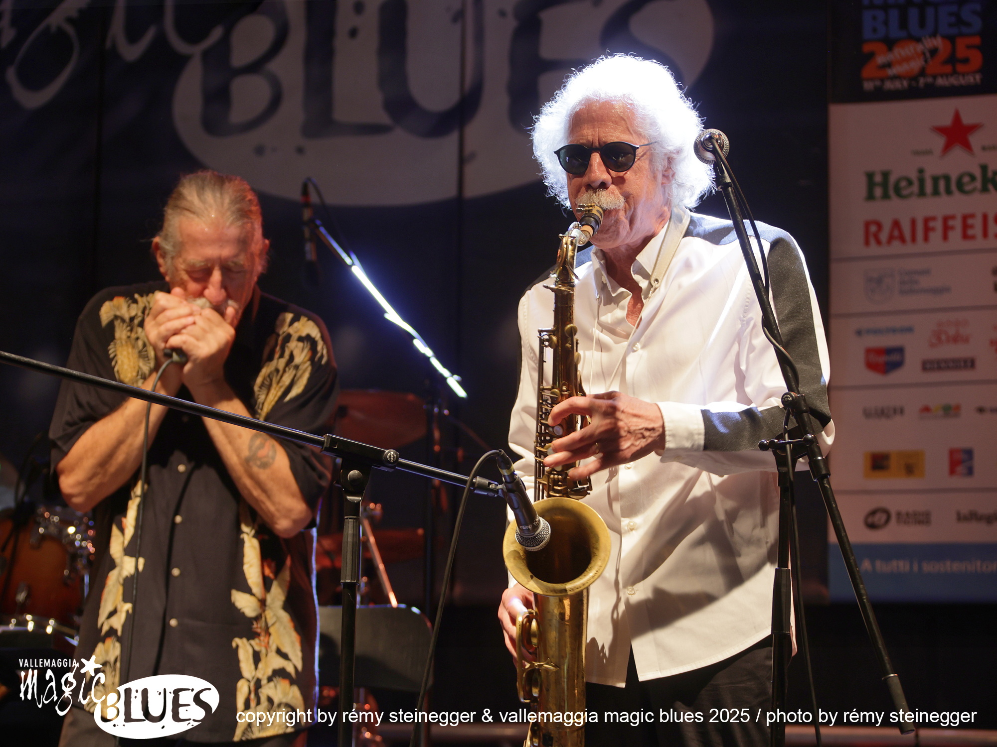 Ritorna con grande piacere la Treves Blues Band, “il gruppo” italiano di Blues accompagnato per l’occasione del tour per i 50 anni d’attività da una vera icone del blues mondiale: Lou Marini dei Blues Brothers. L’avventura di Fabio Treves iniziò nel lontano 1974, quando decise di portare alla ribalta e far conoscere al grande pubblico, nell’epoca dei cantautori e del Prog Rock, la storia e i grandi maestri del Blues. Fu un successo incredibile, dettato anche dal fatto che Treves ha percorso per decenni in lungo e in largo tutta la penisola. Non c’è club che non abbia visto la presenza del Puma di Lambrate! Infinita la lista dei musicisti che hanno suonato in concerto e su disco con il “maestro”. Ha avuto anche occasione di suonare sul palco con grandi musicisti, tra cui anche il mitico Frank Zappa (Milano e Genova 1988). Oggi, dall’alto della sua infinita esperienza, è un punto di riferimento e un dispensatore di utili consigli per i giovani musicisti che vogliono cimentarsi con il Blues. In comune con Frank Zappa c’è Lou Marini (Zappa in New York 1976). Spesso definito un “eroe jazz non celebrato”, è l'anima, l'abile polistrumentista, arrangiatore, compositore, educatore e produttore, si è fatto un nome come sideman in vari gruppi di alto profilo, e qualsiasi musicista jazz newyorkese di spicco vi dirà che è “uno dei migliori musicisti jazz in assoluto”. Marini, che vive a New York, è famoso per la sua camaleontica capacità di immaginare ed eseguire idee inventive nel Jazz, nel Rock, nel Blues e nella musica classica. È davvero uno dei luminari più prolifici del settore, che dimostra un impegno instancabile nel suo mestiere. Innunerevoli le sue collaborazioni quale membro di diversi gruppi musicali di spicco: Woody Herman Orchestra, Doc Severinson, Blood, Sweat and Tears, The Band, Levon Helm & the RCO All-Stars, Dr. John, il già citato Frank Zappa, Saturday Night Live (SNL) Band, The Blues Brothers, Maureen McGovern, Lew Soloff Quintet, Blue Beck con Joe Beck, Eric Clapton, Red House e Magic City Jazz Orchestra. A Maggia si prospetta una serata indimenticabile, da non lasciarsi sfuggire!